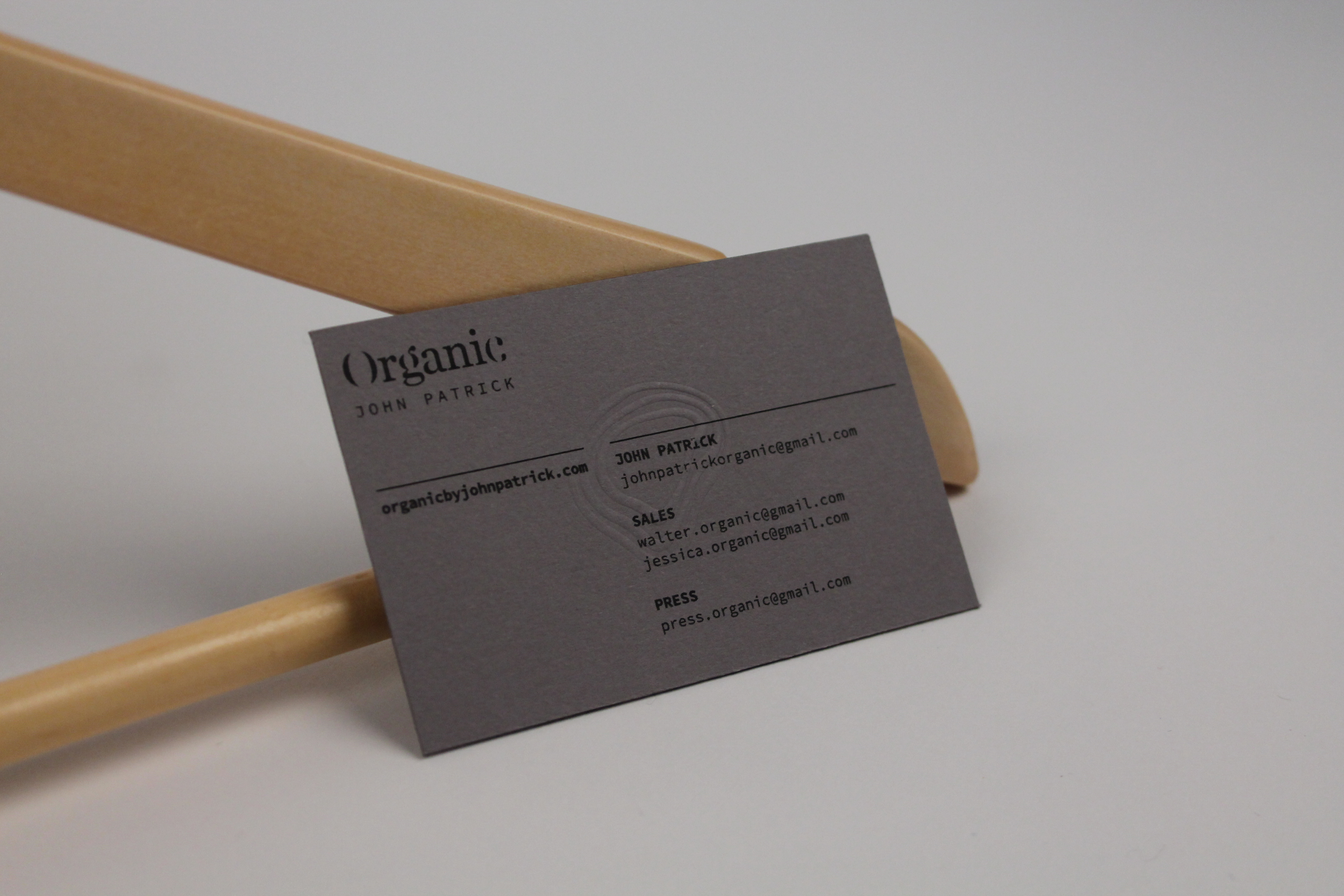 The logo uses ambiguous organic form, being seen as contours, stones,etc. Neutral colours were chosen to reflect natural muted tones, whilst the use of embossing for all the stock, and laser cutting for the hangers and packaging allow John Patrick to leave a small carbon footprint.