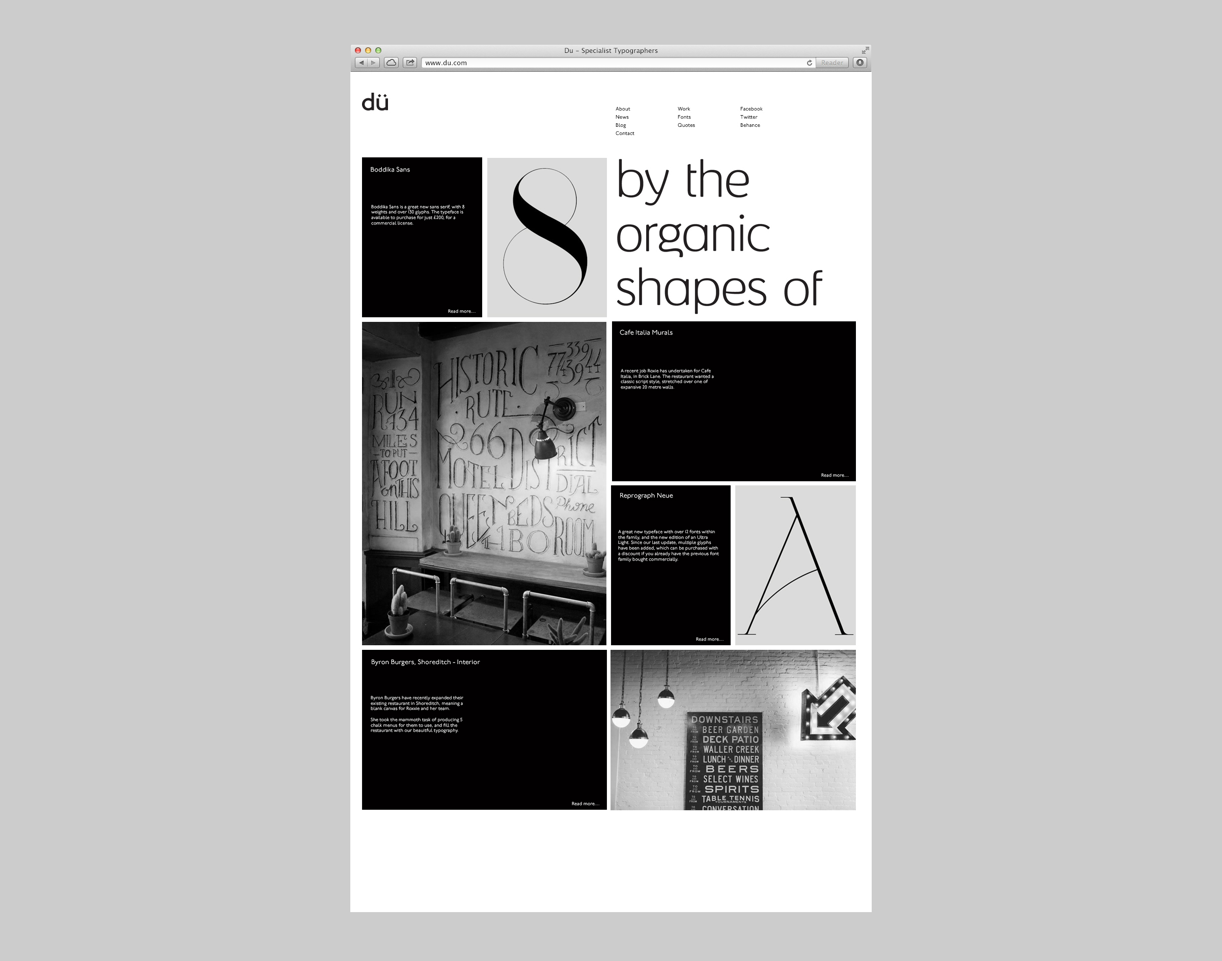 "We are Dü. A specialist typographic studio partnership, soon to be located in Hackney, East London. The studio will consist of two specialists in their prospective fields; a technical typographer with an eye for modular and geometric form, and a unique letterer, who brings a modern approach to a traditional craft."